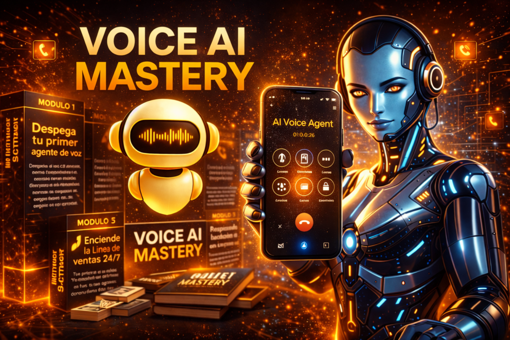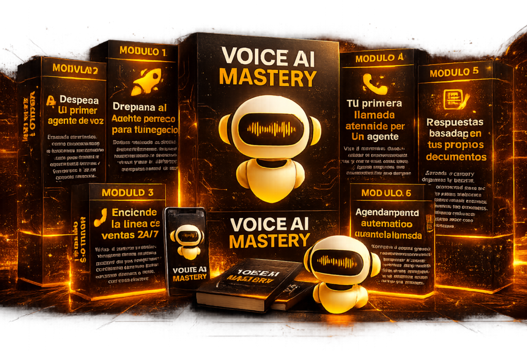 En este curso corto y ultra práctico (sin código, sin ser “experto” en IA) aprenderás el paso a paso para crear, personalizar y vender asistentes de voz con tu marca, sin depender de ninguna plataforma cerrada.